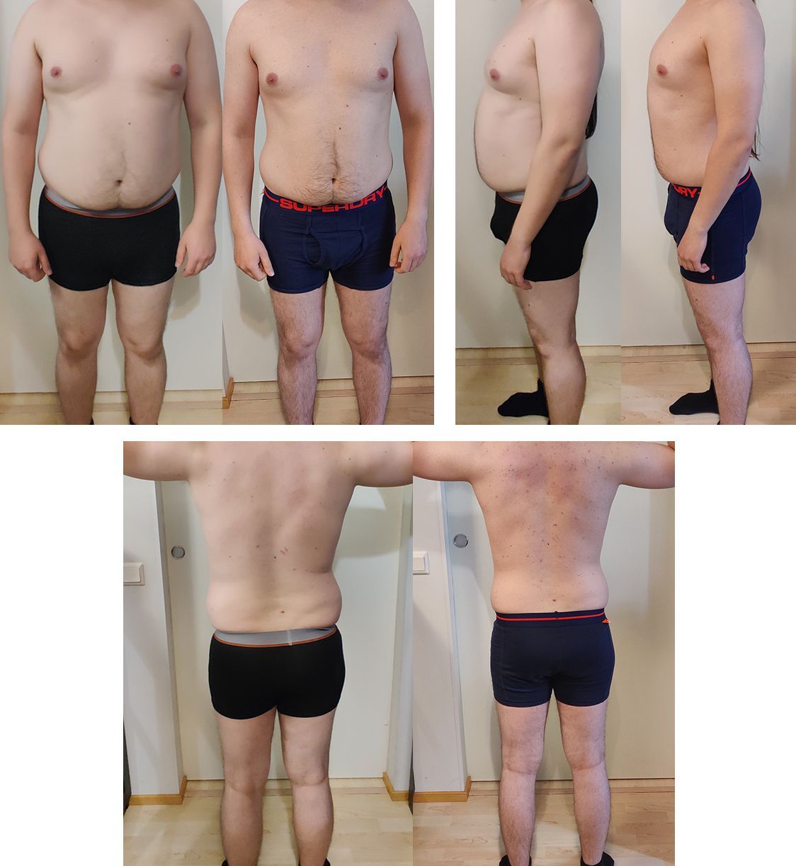Yksi huomion arvoinen asia tämän asiakkaan kohdalla on se, että hänellä oli muutamia työmatkoja jolloin ruuat eivät olleet ihan sitä mitä oli tarkoitettu ja ruuan kanssa taisi mennä hieman oluttakin, mutta silti tulokset puhuvat puolestaan. Ja en todellakaan kannusta lähtemään kaljalle varsinkaan jos kehoa haluaa muokata mahdollisimman tehokkaasti, mutta tässä hyvänä esimerkkinä se, että kehonmuokkauksen ei todellakaan tarvitse olla kituuttamista ja rääkkiä.